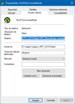 3. Editar el directorio "Destino" y agregar -console al final, después de WoW.exe (Aplicar y aceptar)